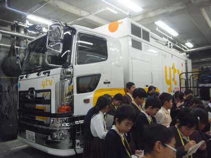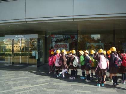 今日(5日)、5年生は京橋にあるよみうりテレビへ、社会見学に行きました。これから始まる生放送の番組を準備中のスタジオ、中継車など大きなトラックがある車庫(中継車の中も)などを見学させていただきました。私たちが見学している間も、スタッフの方々は、着々と準備をされていました。大きなカメラや天井から釣り下がる多くの照明を見上げ、子どもたちは驚いていました。貴重な体験ができた、1時間となりました。