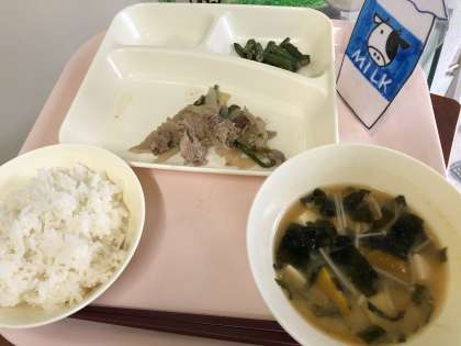 「みそ汁」はいつものように大好きですが、さんどまめのごまあえが思いのほかとても人気がありました。