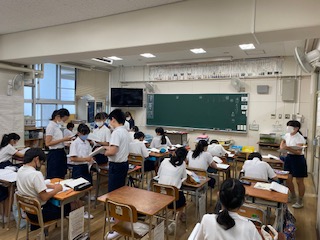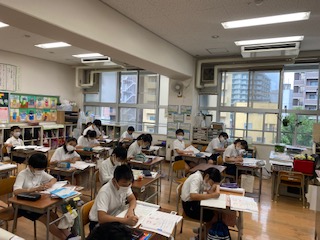 本日(11日)は6年生の登校日でした。授業時数確保のため、6年生のみ3時間学習を行いました。子どもたちはとても真剣に学習していました。プールでの学習も、先生のジェスチャーを見ながら、集中して取り組んでいました。
