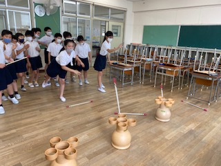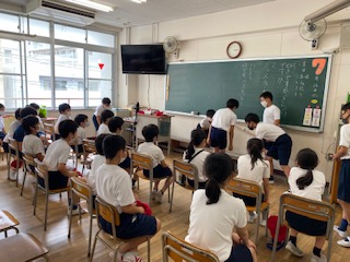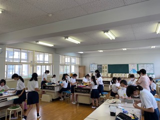 「ゲームクラブ」トゥホ、「手作りクラブ」小物作り、「屋外運動クラブ」ジェスチャーゲームの様子です。屋外運動クラブは、雨天のため残念ながら屋外で活動できませんでしたが、6年生を中心に教室で楽しいゲームを考えていました。