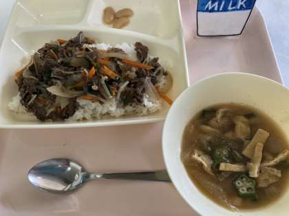 牛丼 とうがんのみそ汁 大福豆の煮もの 牛乳