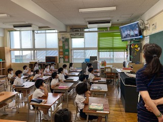 今年は、コロナの影響のため、2年生の子達の教室案内ができなかったので、ビデオで教室紹介をしました。クイズ形式で紹介してくれたので、とてもよくわかり、1年生の子達は大喜びでした。