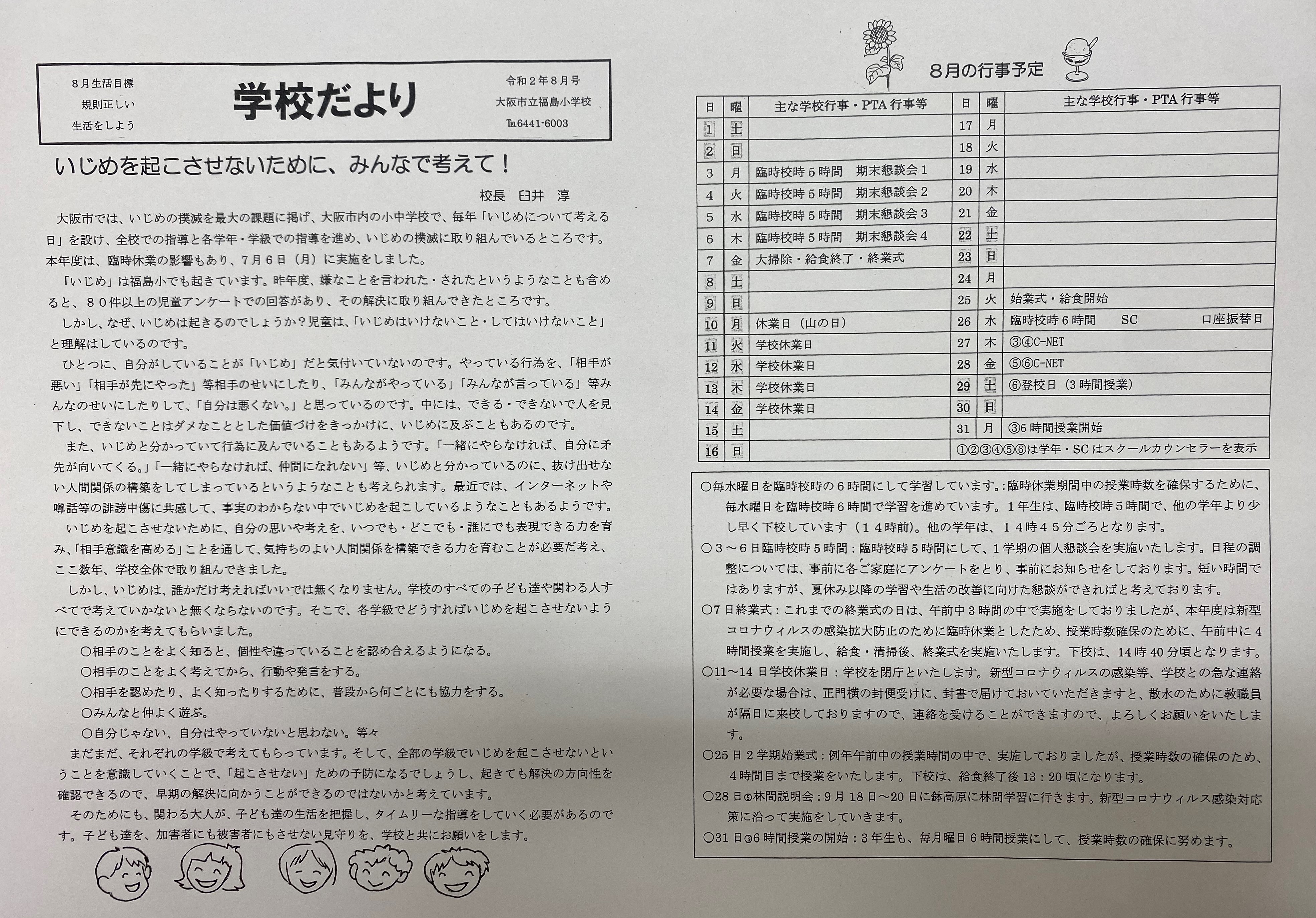 学校だより8月号を配布文書に掲載しましたので、ご覧ください。