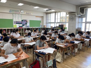 本日(29日)は6年生の登校日でした。1学期に引き続き、授業時数確保のため、6年生のみ3時間学習を行いました。