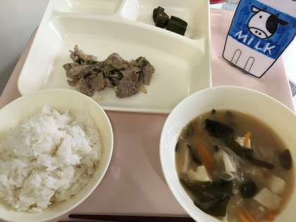 今日は和食一番人気のおみそしるです。『オクラのおかか炒め』も「おいしい!」とよろこんでよく食べていました。