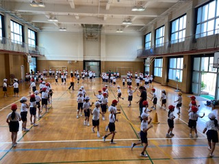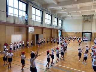 10/3(土)の体育参観に向けて、1,2年生が福島音頭の練習をしています。今日は初めての合同練習でしたが、初めてとは思えないくらいとても上手に踊れていました。最後の決めポーズもバッチリです。