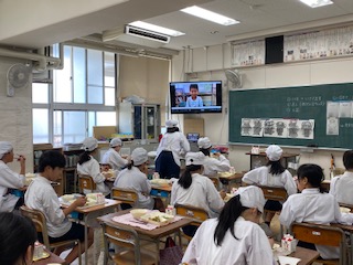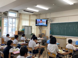 今日の給食食べ方講座は、「枝豆の食べ方」でした。枝豆の皮を口のところへ持っていってから、押し出して食べます。こうして食べると、こぼれ落ちることも少ないようです。ぜひ試してみましょう。
