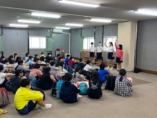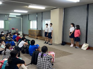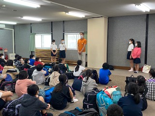 昼食の後大広間で開舎式を行いました。宿舎の方への挨拶とこれから3日間の心構えについてお話を聞きました。