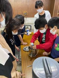 さあ子ども達が楽しみにしていたアイスクリーム作り開始です。係の方の説明をしっかりと聞いて、班ごとに作り始めています。