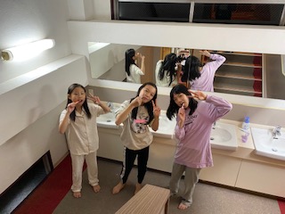 只今就寝準備中です。2日目なので、みんなテキパキとできています。室長会議でも、しっかりと今日一日の反省ができました。