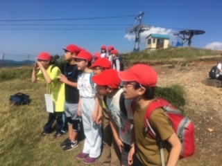 頂上に着きました。福島小学校のいいところをみんなで叫びました。