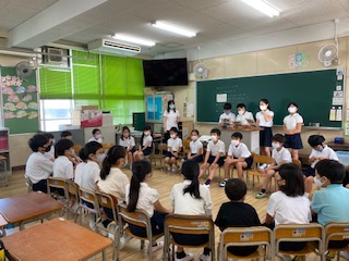 今朝2学期初めての「たてわり遊び」がありました。久しぶりの教室移動でしたが、1年生もスムーズに移動することができました。ハンカチ落としやしっぽとりなど、班ごとに1年生から6年生まで仲良く遊ぶことができました。