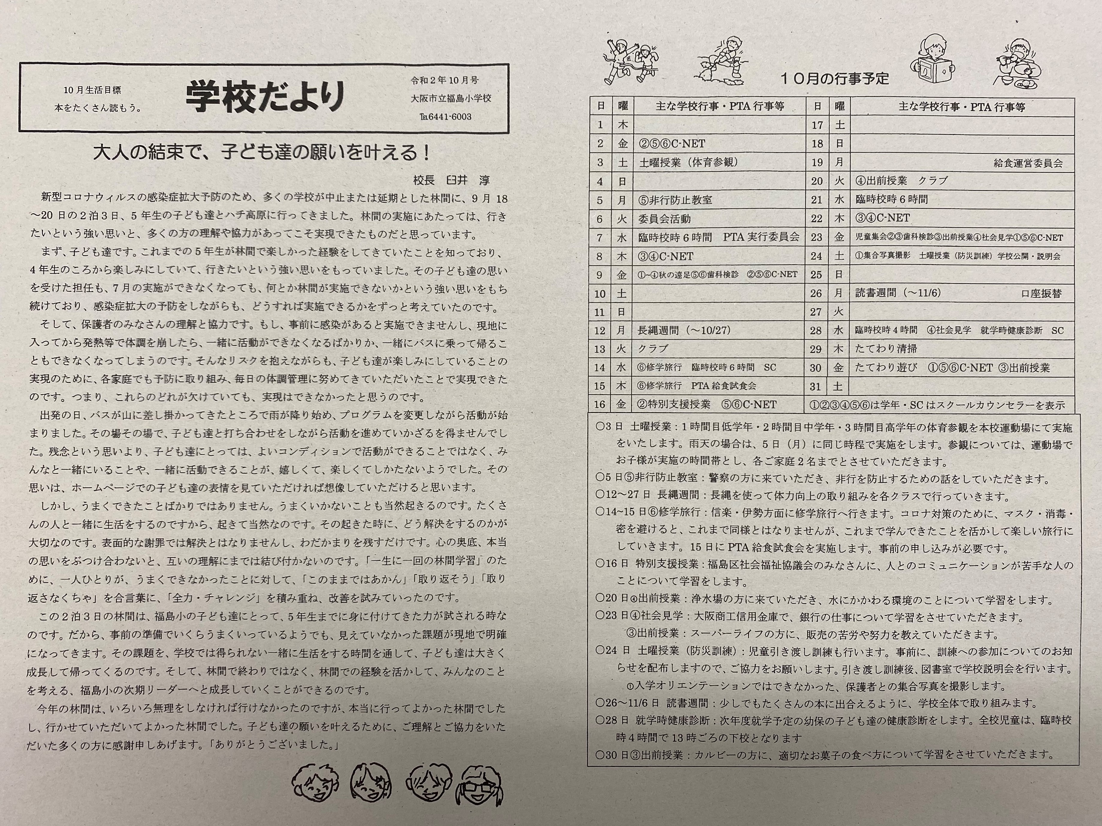 「学校だより10月号」を配布文書に掲載しましたので、ご覧ください。 学校だより10月号