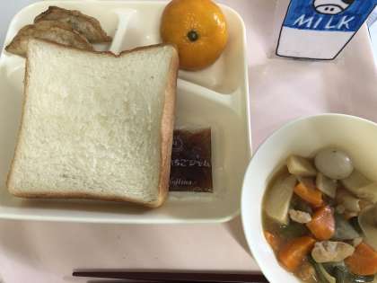 あげぎょうざ 中華煮 みかん(冷凍) 食パン いちごジャム 牛乳