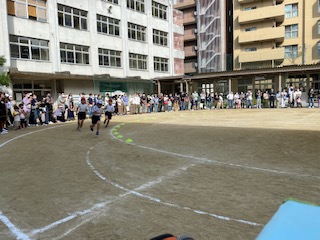 2年生の「らん らん♪RUN」徒競走の様子です。2年生はトラックを3/4周しました。
