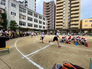 4年生の個人走「Sun!Fun!Run!」と団体競技「One Team!〜力を合わせて〜」の様子です。チームで力を合わせてボール運びをがんばっていました。