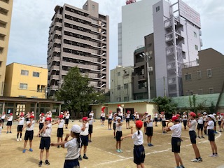 5,6年生「おわりの体操」と「おわりの言葉」です。みんな最後までよくがんばり、本当に思い出に残る「福島スポーツフェスティバル」となりました。