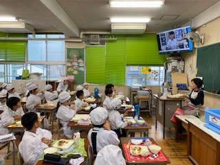 今日の給食食べ方講座は、「食事のマナー」でした。肘をついて食べないことを給食委員会の子が、良い例と悪い例を出して、教えてくれました。姿勢を良くして食べると、見た目がきれいなだけでなく、消化も良くなるそうです。ぜひ実践しましょう。