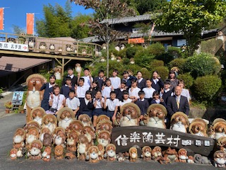 陶芸村に到着しました。最初にクラス写真を撮りました。