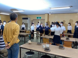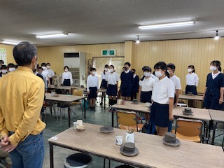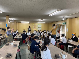 陶芸村の方に挨拶をしました。作り方の説明を受けているところです。