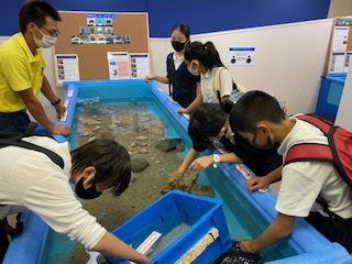 伊勢エビやドクターフィッシュなどを触る体験をして、子どもたちは大はしゃぎです。