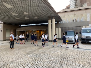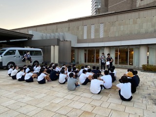 開舎式の後、荷物を部屋に置いてから避難訓練を行いました。部屋に戻る途中、英虞湾の夕焼けがとても綺麗でした。