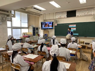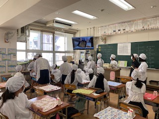 今日の給食食べ方講座は、「グラタンの分け方」でした。配膳をする前にみんなで視聴しました。給食当番の子がきれいに分けられるように、分け方のコツを教えてくれました。