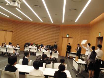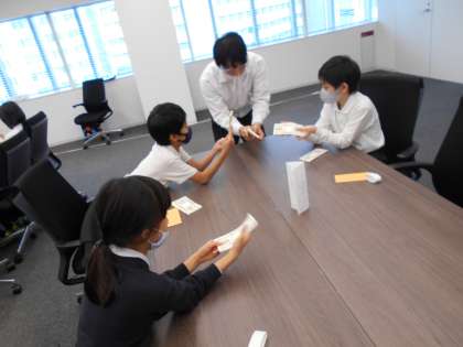23日(金)に,大阪商工信用金庫でマネースクールがありました。1時間目は,お金のことや銀行の仕事について,クイズや劇で楽しく分かりやすく教えていただきました。2時間目は,模擬紙幣を使ってお札を扇状に広げる方法を班ごとに教えていただきました。そして,1人ずつ1億円を抱えて,その重さを実感しました。たくさんの質問にも答えていただきました。たくさんの体験をして,また,たくさん学ぶことができました。帰校してからも,「すごく楽しかった!」と口々に話していました。大阪商工信用金庫のみなさん,ありがとうございました。