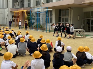 今朝の児童集会は、運動場で「進化じゃんけん」を行いました。じゃんけんに勝ったら、たまご→ひよこ→にわとりと進化していきます。いろんな学年の子達とじゃんけんがいっぱいできて、とても楽しそうでした。