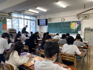 5年生、家庭科「オリジナルみそ汁を考えよう」の様子です。