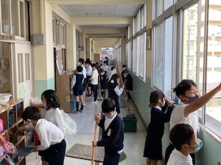 昨日は月1回の「たてわり清掃」の日でした。掃除の仕方も随分と上手になりました。1年生の子達も、自分の割り当ての掃除場所で、てきぱきと掃除を行っていました。