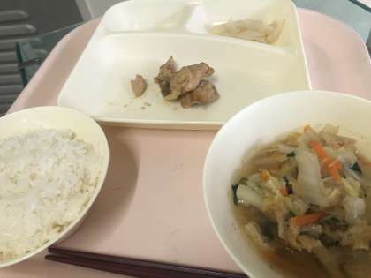 旬の野菜『かぶ』が登場しました。さっぱりとしたゆず風味で子ども達はおいしくいただいていました。五目汁の具は、かまぼこ、うすあげ、はくさい、だいこん、にんじん、みつば、えのきだけの7種類です。寒い日の温まる汁ものでした。
