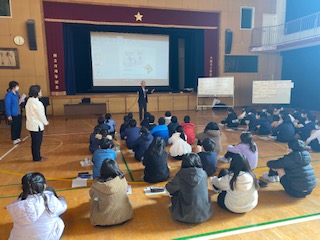本日5年生を対象に、手話サークル「ふじ」、社会福祉協議会の皆さんによる、聴覚障がいについての出前授業が行われました。手話以外にも伝える手段があることを学習し、子どもたちは積極的に伝え合おうと取り組んでいました。「相手のことを知ろう、分かろうという気持ちが大切」ということを学んだ授業でした。