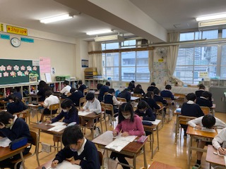 今日は、国語と社会が行われました。子どもたちはみんなとても真剣に取り組んでいました。明日は、算数、理科、そして今年度から5,6年生は英語も行われます。