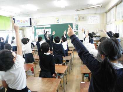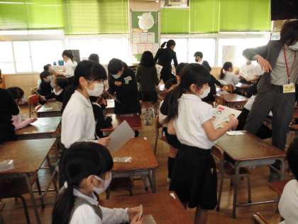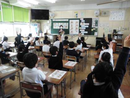 当日は、2年、4年、5年の英語の授業が行われました。これまで本校では6年間外国語活動の研究をしてきました。その積み重ねが生かされ、子ども達はとてもいきいきと活動に取り組んでいました。