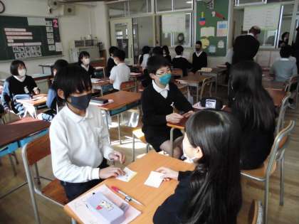 写真は、5年生「Who is your hero?」の様子です。一人ひとりが考えた自分のヒーローを絵カードを見せながら紹介することができました。友だちから紹介の仕方のアドバイスももらって、さらに工夫することができました。来週はいよいよクラス全体でプレゼンをします。