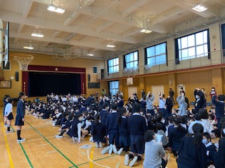 今朝の児童集会は、「福島小学校クイズ」でした。学校に関するクイズを集会委員会の子達が考えてくれました。「福島小学校は今年で創立何年目?」や「教室の数は?」など、難しい問題もありましたが、楽しんでクイズに答えていました。
