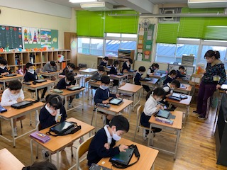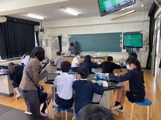 本日、ICT支援員の方が来校されました。1年生と6年生の学習でタブレットの使い方を教えていただきました。子どもたちは使い慣れている子も多く、スムーズにアプリを立ち上げて、1年生ではお絵かきをしたり、6年生では理科の調べ学習をしたりすることができました。