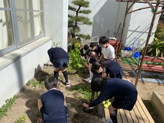 掃除だけでなく雑草抜きもしてくれました。6年生のみなさん、本当にありがとうございました。明日の卒業式がんばってくださいね。
