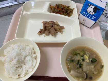 鶏肉のてり焼き さつまいものみそ汁 きんぴらごぼう ごはん 牛乳