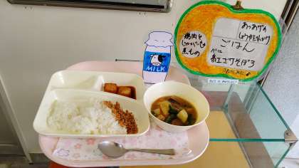 献立でした。厚揚げのしょうゆだれかけは、甘辛い味付けで美味しかったです。