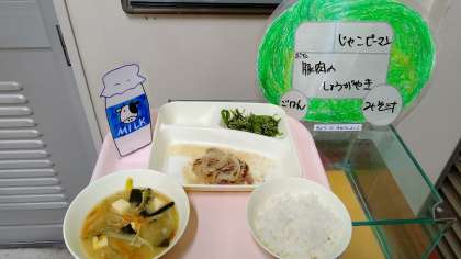 豚の生姜焼き みそ汁 じゃこピーマン ごはん 牛乳