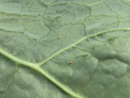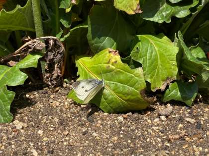 ふくふく広場に植えているキャベツに、モンシロチョウがたまごをうみました。そこから幼虫がかえり、キャベツをムシャムシャとたくさん食べています。これからどのように大きくなっていくか観察していきます。