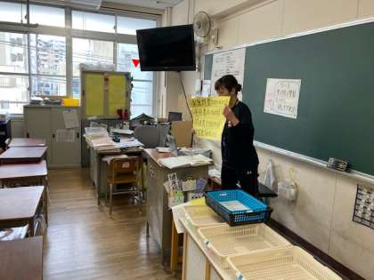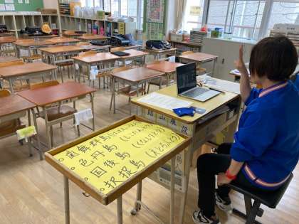Teamsのチャット機能を使って、3つの選択肢の中から正しい答えをひとつ選ぶこともできました。子どもたちは端末を上手に使って解答することができました。