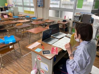 昨日は2,3年生がオンライン学習を行いました。3年生はプリントに地図記号をかいて、先生にチェックしてもらいました。みんな上手にかけていました。