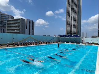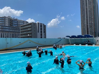 本日3時間目、待ちに待った6年生のプール開きがありました。なかなかお天気に恵まれなかったので、今日が今年度初めての水泳学習でした。2年ぶりにプールに入るので「泳げるかなあ」と不安な子もいましたが、学習が始まると、みんなとてもいきいきとして、楽しそうに泳いでいました。