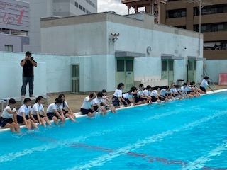 本日4時間目に、卒業アルバム用の写真撮影が行われました。大好きなプールで、みんなでポーズを決めて、素敵な写真が撮れました。