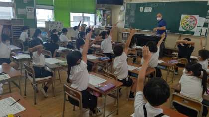 テーマは『食べ物のはたらきをしろう』です。食べ物は、黄・赤・緑のグループがあり、それぞれはたらきが違う事を勉強しました。
