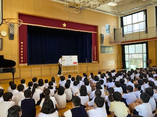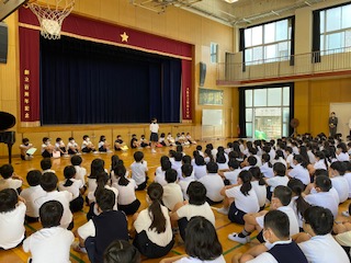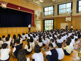 その後、校長先生と、生活指導担当の先生から、夏休みの生活についてのお話を聞きました。夏休み中も「水分補給」は忘れずに、生活リズムを崩さず過ごしてほしいと思います。
