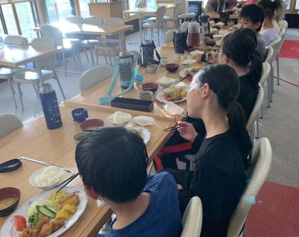 林間学習最後の夕食になります。夜の活動に向けてしっかり食べました。